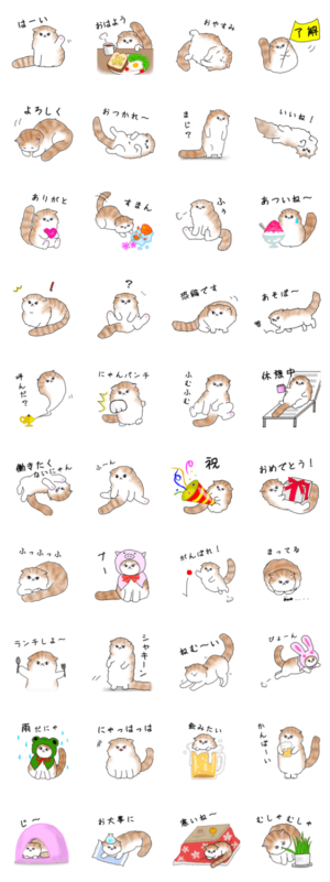 スコティッシュフォールドの茶トラをモデルにした猫のスタンプです。rui より発売