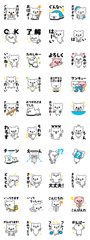 ドMくまちゃんのシンプルに毎日使える、文字入りの日常的なスタンプです。『ドSうさぎちゃん』と『ただのぶたさん』と『にゃんこDX』もいるよ。白熊バージョンです。4A-Studio(よんえーすたじお) より発売