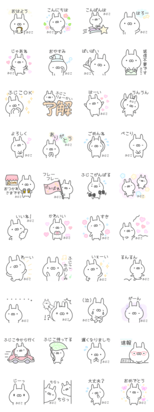 伝えるうさぎスタンプの新シリーズ。女子力高めのふじこさん専用スタンプです。キラキラしたかわいいうさぎと一緒に、日常会話を楽しんでください。