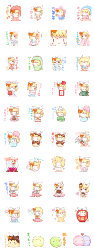 ゆっきょオリジナルキャラクタースタンプ第一弾!金髪でお菓子作りと歌が好きな女の子・鈴音(りんね)ちゃんのスタンプ。ゆるめの顔のゆるりんねちゃん多め。