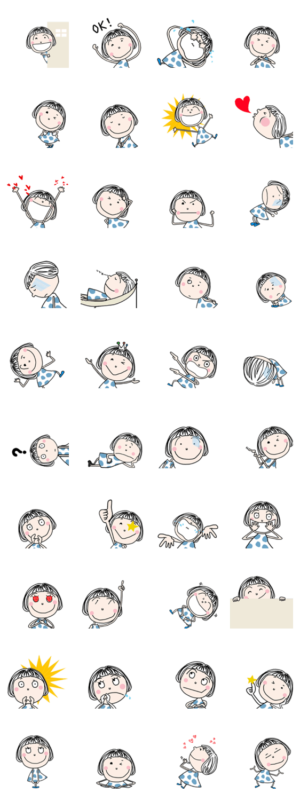言葉なんていらない!絵が大きいので見やすい!選びやすい!表情だけの絵文字風スタンプです♡おかっぱ・ボブヘアの人は是非♪edacchi より発売