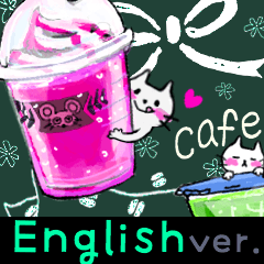 オシャレなカフェメニューと × ほっこり猫さんたちのキュートなスタンプ【英語版】です♪ (同じ画の日本語版もあります♪) .../ ガーリー ゆめかわ タピオカ にゃんこ /