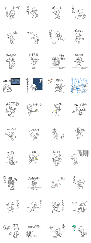野球が大好きなかわいい棒人間たちのスタンプです。「S」のつくチームの選手、保護者、応援する人、その他すべての野球好きの人に。ぷ28 より発売
