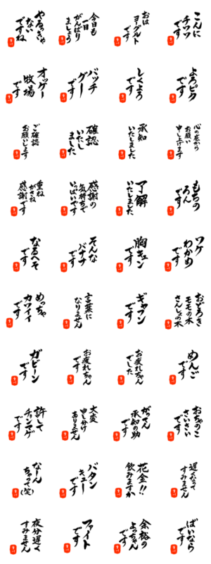 重川さん用死語入り筆文字敬語 スタンプ画像一覧