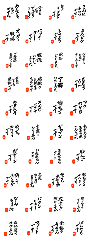 林さん用死語入り筆文字敬語 スタンプ画像一覧
