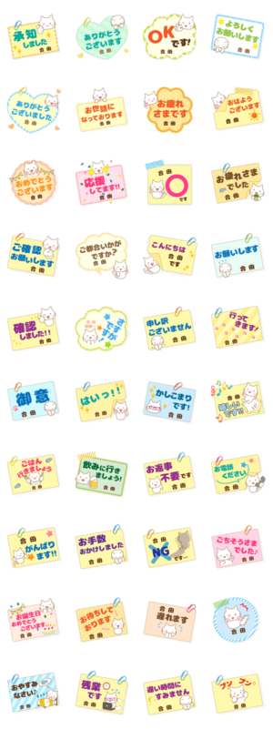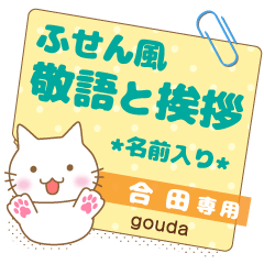 ごうだ/合田様用★ふせん風ねこの大人日常マナーと会社仕事丁寧敬語挨拶スタンプ/ネコフセン/猫付箋メモ/お名前入り/なまえ姓苗字/ビジネス職場しごと/サラリーマン業務お名前入りスタンプ専用★アイシスデザイン株式会社 より発売