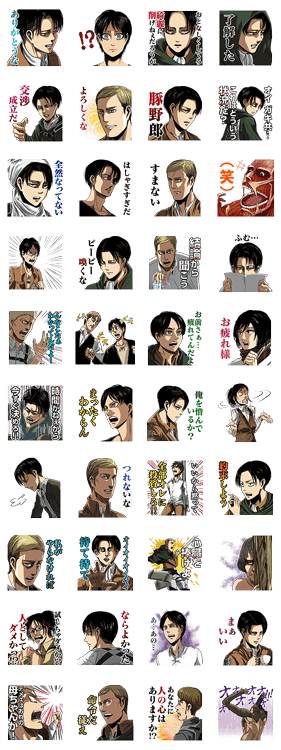 兵長がカッコ良すぎて使う時にニヤニヤしちゃいます。日常で使いやすいスタンプで毎日使ってます。