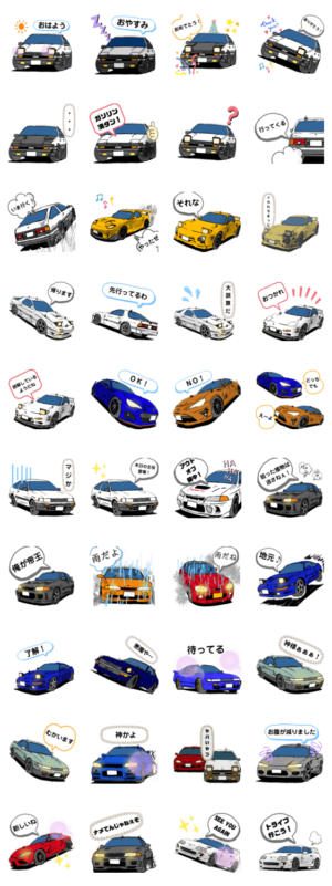 走り屋・スポーツカー好き・日本車好き・車好きの方へ。 日常会話で使えるカッコいいスタンプです。