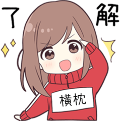 横枕専用のスタンプ第2弾です。ジャージのゼッケンに「横枕」の名前が入っています。