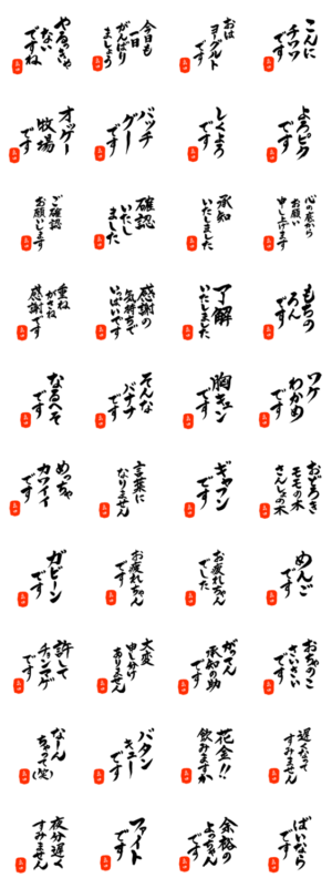 島田さん用死語入り筆文字敬語 スタンプ画像一覧