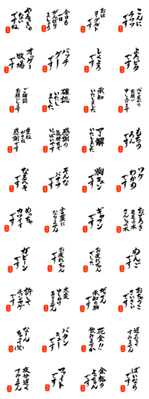 大西さん用死語入り筆文字敬語 スタンプ画像一覧