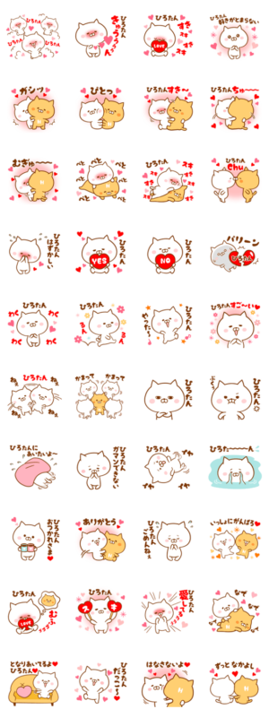 ♥愛しのひろたん♥第三弾はラブ満載♥ ひろし/ひろき/ひろと/ひろあき/ひろゆき/ひろのぶ/ひろのり/ひろこ/ひろみ 等,ひろたんに送るネコの名前・あだ名スタンプです。