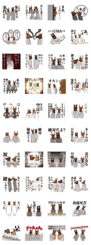 「馬と鹿」シリーズ第9弾。なんとなくホラーな感じのスタンプです。 でも怖くはありません。nekovitan より発売