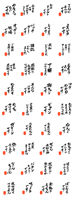西野さん用死語入り筆文字敬語 スタンプ画像一覧