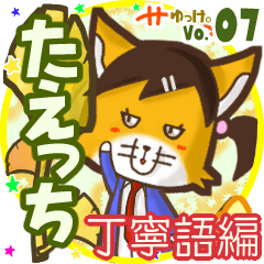 ゆっけ。が贈る【たえっち】用名前スタンプ07です。友達とのやりとり等に。《ゆっけ。のアニぱ!》07「きつねのてんくー姉妹・妹くーこ」です。