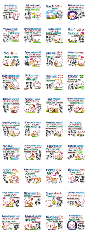 インドネシア語と日本語と英語 連絡用 スタンプ画像一覧