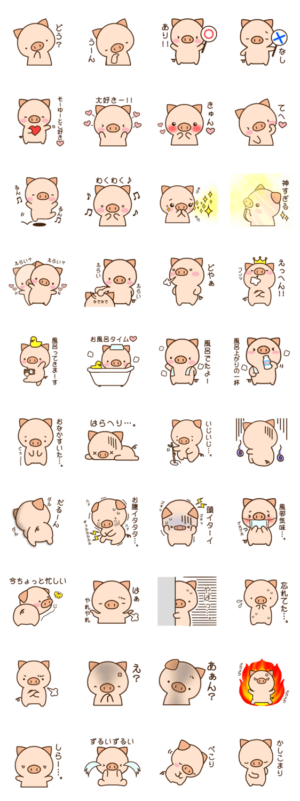 ほっこりと気持ちを届ける「ほっこりぶぅ」のスタンプ第3弾です。 日常に使いやすいものから、お風呂や体調不良までいろいろなバージョンを描いてみました。