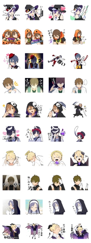 男子達がハロウィン仮装で大集合スタンプ第2弾!今回はかまって男子も参戦! 天使に悪魔、ゾンビにピエロ、秋の夜にぴったりホラーテイストですが普段使いもバツグンですよ株式会社DK より発売
