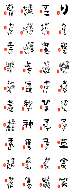 公文さん専用、味わい深い筆文字のJK語スタンプ。イッレ・コスヤ より発売
