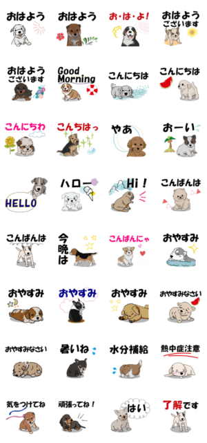 夏に使いたい!犬のあいさつスタンプ スタンプ情報