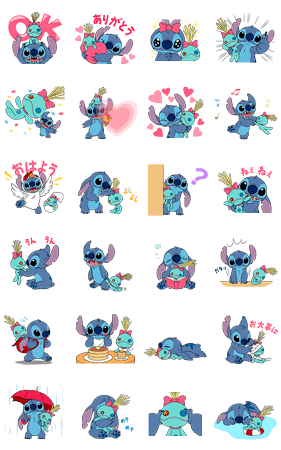 スティッチとスクランプのスタンプです。やんちゃでにぎやかなキャラクターをラインに飾ってトークを盛り上げましょう!