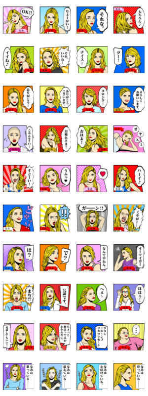 ポップなアメリカンコミック風イラストがおしゃれ!なみ専用の女子力高めの大人かわいい(&ちょいシュール)スタンプです!【奈美・菜美・七海・波美・南海・ナミ】ブラフデザイン より発売