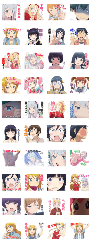 伏見つかさ10周年企画!『エロマンガ先生』×『俺の妹がこんなに可愛いわけがない。』のコラボLINEスタンプが登場!紗霧や桐乃の名シーンのスタンプでトークを盛り上げよう!EMP,OIP2 より発売