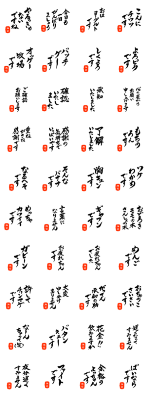 瀬能さん用死語入り筆文字敬語 スタンプ画像一覧