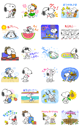 スヌーピーの夏に使えるアニメスタンプが登場。可愛いスヌーピーと一緒に暑い夏を乗り切ろう♪
