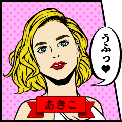 ポップなアメリカンコミック風イラストがおしゃれ!あきこ専用の女子力高めの大人かわいい(&ちょいシュール)スタンプです!【明子・晶子・亜希子・昭子・彰子・アキコ】ブラフデザイン より発売