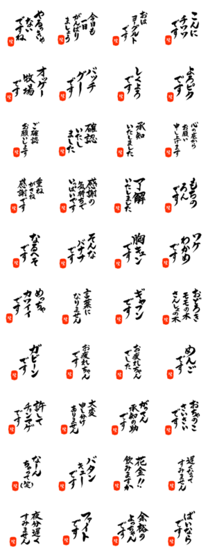 鷺さん用死語入り筆文字のスタンプ。敬語丁寧語で仕事でもバンバン使える。判子(はんこ)付きで見た目も鮮やか!