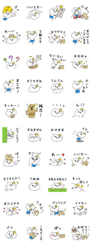 女子力高めな白猫、ネコ子のお返事&あいづちスタンプです。よく使う言葉をたくさん集めました。お友達や家族、先輩、同僚にサクッと素早くお返事できます♪