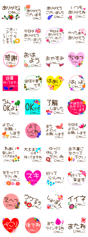 『じゅんこ』丸文字花スタンプのダウンロードはこちら↓