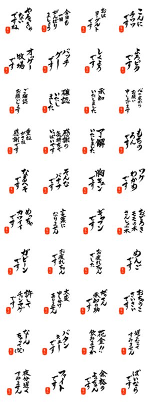 亀山さん用死語入り筆文字敬語 スタンプ画像一覧