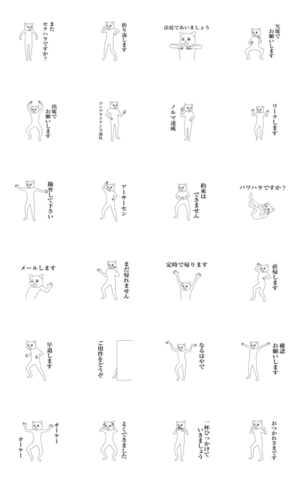 パッと見ダサいけど、昭和味がありかわいくて面白いスタンプを猫(ねこ)顔にし、仕事で使えそうな言葉を多めにしてみました