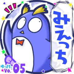 ゆっけ。が贈る【みえっち】用名前スタンプ05です。友達や恋人とのやりとり、グループの連絡にぜひ。《ゆっけ。のアニぱ!》05「てきとーなペンギン」のスタンプです。