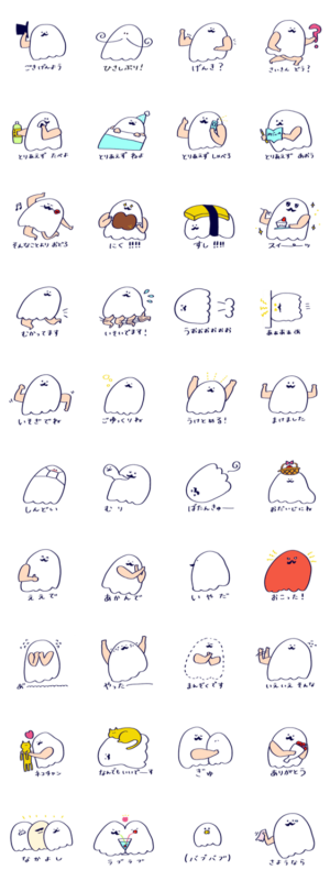 ゴジョーはおばけ。ゴジョーはおじさんのおばけ。でも全然コワクナイ。最近は筋トレが趣味の楽しいおばけ。pitpotpat より発売