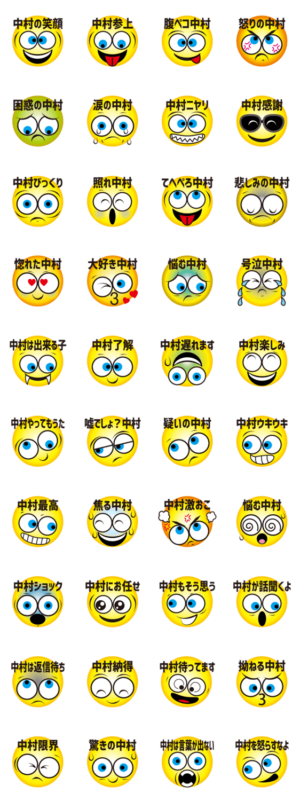 全国のなかむら様おまたせ致しました。黄色い顔のかわいいキャラクタースタンプです。日常のスタンプ会話に是非どうぞ! プレゼントなどにいかがでしょうか?ゆずきち より発売