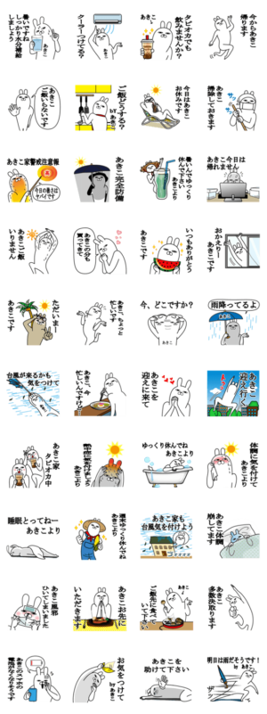 あきこのスタンプ家族の業務連絡夏編。アキコ,akiko,あっこ,アッコ,明子,晶子,晃子,亜紀子,亜希子,昭子,あき子,アキ子などあきこ専用スタンプ