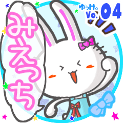 ゆっけ。が贈る【みえっち】用名前スタンプ04です。友達や恋人とのやりとり、グループの連絡にぜひ。《ゆっけ。のアニぱ!》04「ガールなうさぎちゃん」です。