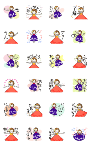 踊る♪フラガールのマナ♥大人のごあいさつ スタンプ画像一覧