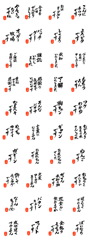 富樫さん用死語入り筆文字敬語 スタンプ画像一覧