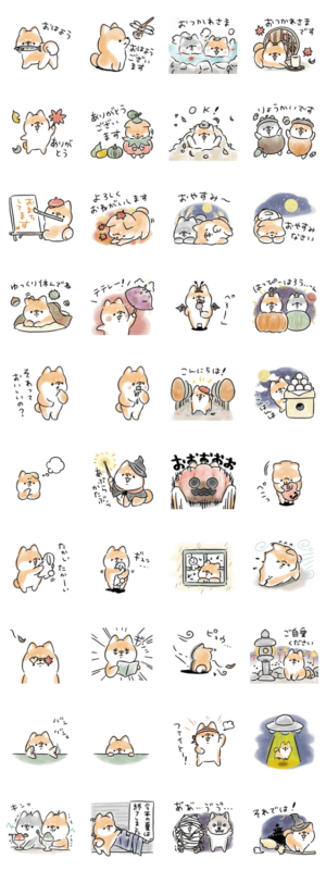 毎日使える秋の柴犬のスタンプですmimori より発売