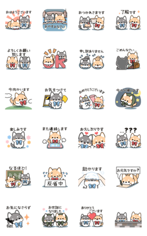 敬語で誰にでも使いやすい!可愛い柴犬双子のスタンプです♪DECOR より発売