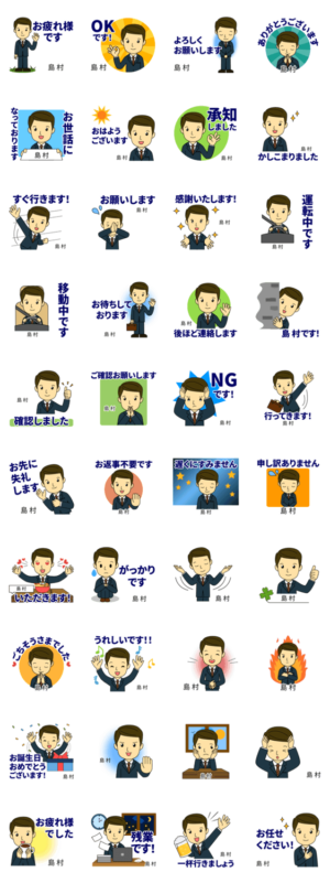 しまむら/島村様用★会社員の毎日の職場仕事敬語&大人日常マナー丁寧挨拶にもOK!お名前入りスタンプ/なまえ姓苗字/ビジネス会話/サラリーマン事務しごと/オフィス業務連絡お名前入りスタンプ専用★アイシスデザイン株式会社 より発売