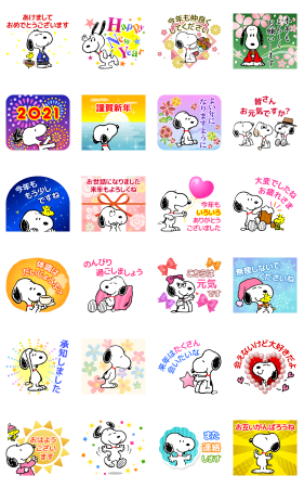 お正月のあいさつをたくさん収録したスヌーピーの動くスタンプです。スタンプ貼るだけでコミュニケーションが取れます。