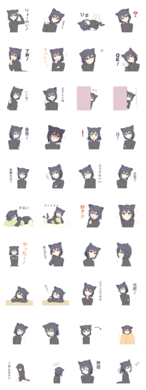 ちょっとツンデレな猫少女のスタンプです。 日常会話に使いやすいスタンプなのでぜひどうぞ。栗崎 より発売