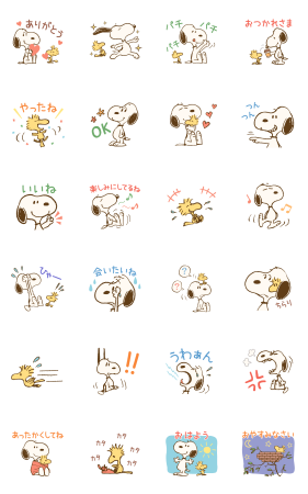 今回のスタンプはスヌーピーだけでなく、ウッドストックとペアになった動くスタンプになっています。