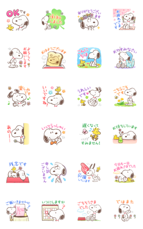 スヌーピーのあいさつスタンプが登場!毎日の挨拶はもちろん、新生活にも使いやすい言葉がいっぱい♪ほんわか可愛いスヌーピーのスタンプで気持ちを伝えてね♡