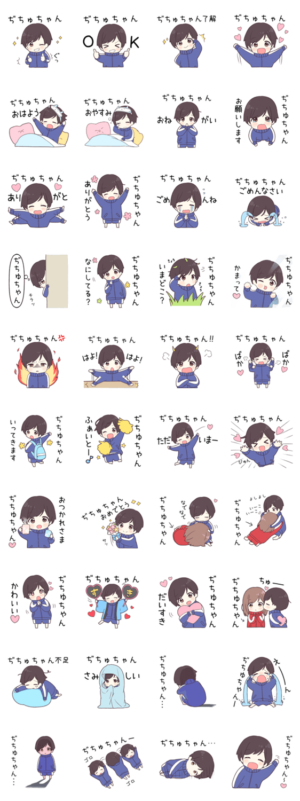 【ぢちゅちゃん】に送る専用のジャージくんスタンプ第1弾です。大好きな「ぢちゅちゃん」に呼びかけます。ジョイネット【男子の呼びかけスタンプ】10 より発売